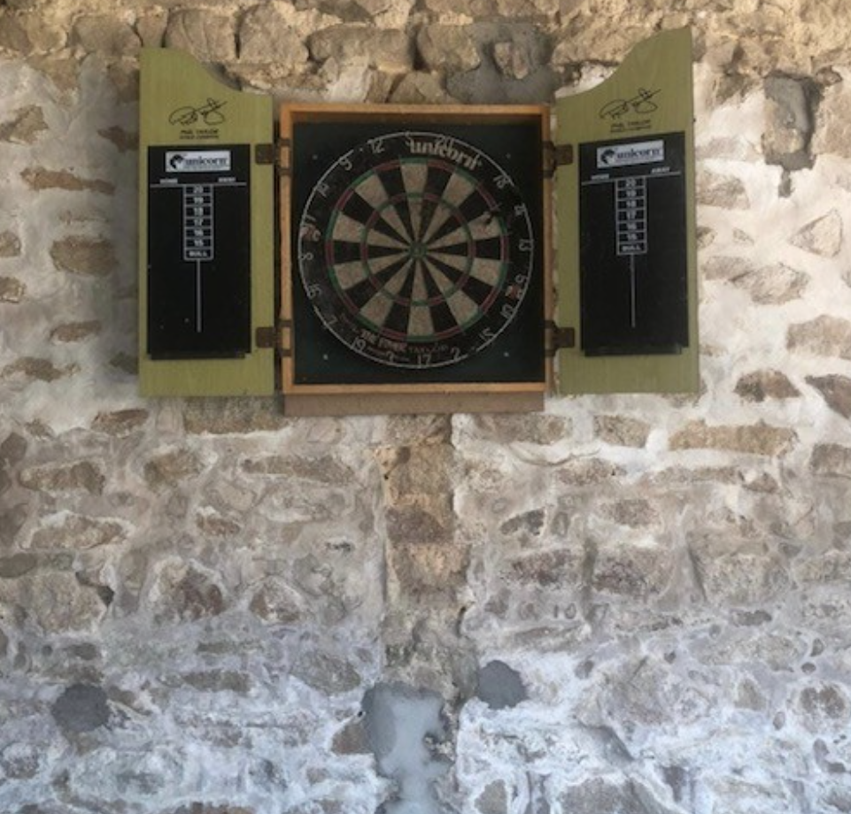At the back of the gîtes, you’ll find our covered shared games area, perfect for relaxed afternoons or a bit of friendly competition. Here, guests can enjoy foosball, darts, a pool table, and ping pong, all sheltered from the sun so the fun continues whatever the weather.